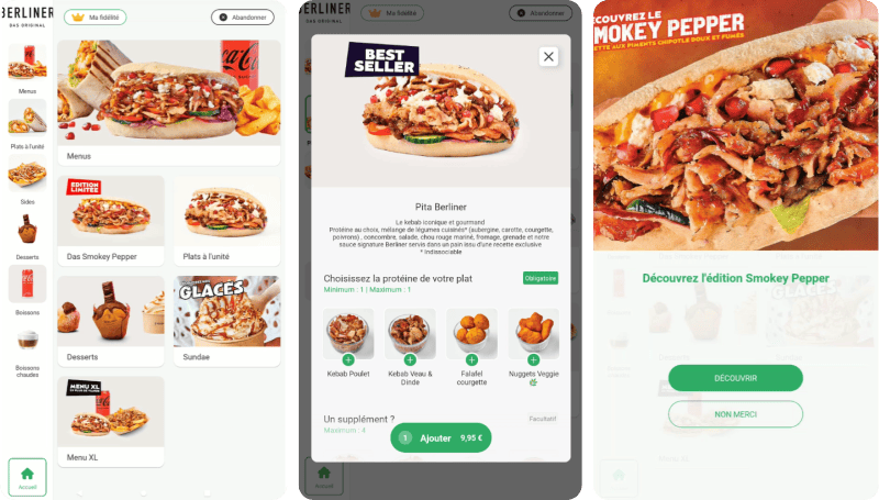 Le back office permet à Berliner Das Original de suivre ses performances et KPIs et d’optimiser son menu en continu. En testant différentes stratégies de suggestion, le taux d’abandon a été réduit de 31 % en 2023 à 24 % en 2025.