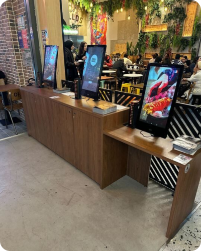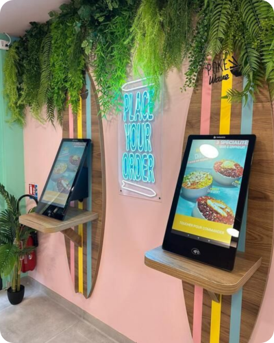 Pour maximiser l’usage de vos bornes, orientez l’écran vers l’entrée du restaurant, ou assurez-vous que les bornes soient visibles depuis l’entrée.